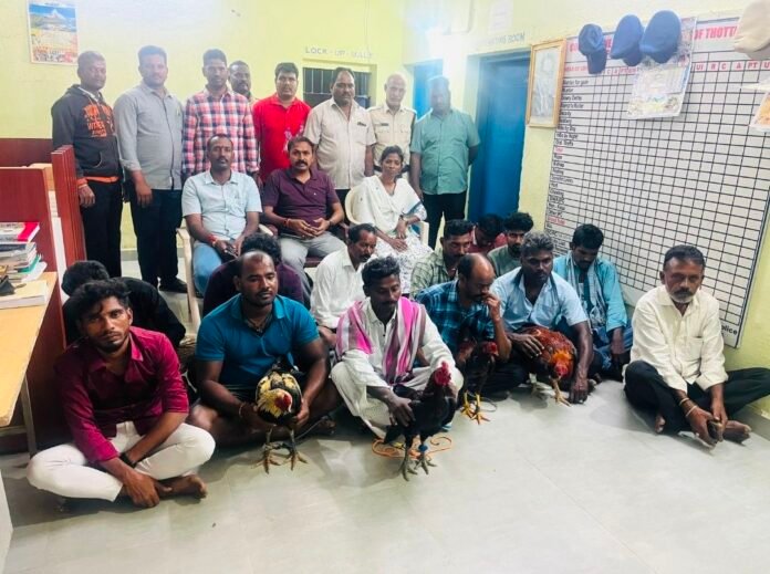 శ్రీకాళహస్తి నియోజకవర్గం, తొట్టంబేడు మండలంలో అనధికారికంగా నిర్వహిస్తున్న కోడి పందెం స్థావరాలపై పోలీసులు మెరుపు దాడులు నిర్వహించారు. తొట్టంబేడు పోలీస్ స్టేషన్ పరిధిలోని తంగేళ్లపాలెం ప్రాంతంలో కోడి పందాలు జరుగుతున్నాయనే నమ్మకమైన సమాచారం అందడంతో పోలీసులు ఆకస్మిక తనిఖీలు చేపట్టారు.