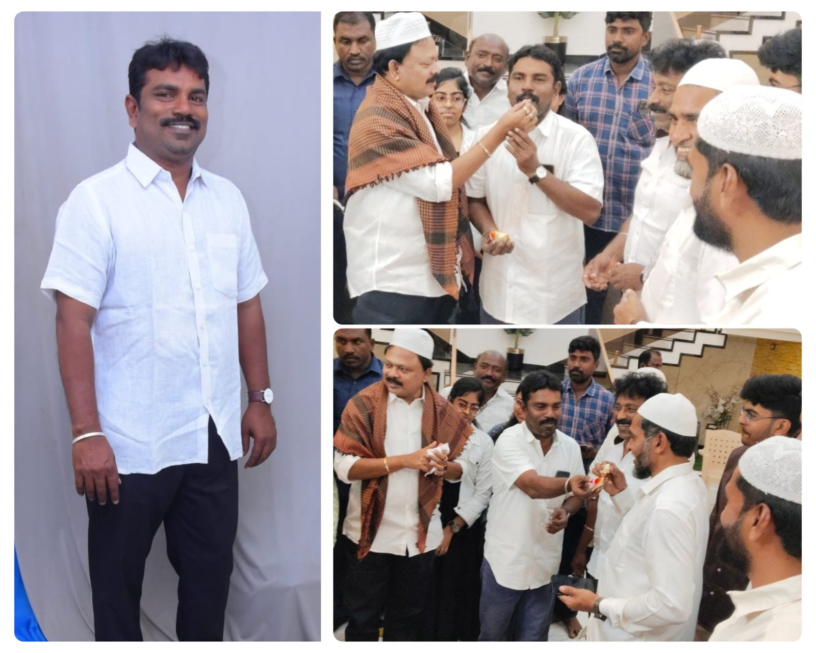కోట మండలం కోటలో గురువారం తెలుగుదేశంపార్టీ కోట మండల ప్రధాన కార్యదర్శి డాక్టర్ తిరుమలశెట్టి కోటేశ్వరరావు జన్మదిన వేడుకలు గూడూరు ఎమ్మెల్యే డాక్టర్ పాశిం సునీల్ కుమార్ సమక్షంలో ఘనంగా జరిగాయి.కోటలో గ్రీన్ ఫౌండేషన్ ఆధ్వర్యంలో రంజాన్ తోఫా పంపిణీ కార్యక్రమానికి సునీల్ కుమార్ విచ్చేసిన సందర్భంగా గ్రీన్ ఫౌండేషన్ అధినేత షేక్ జలీల్ అహ్మద్ ఆధ్వర్యంలో ఎమ్మెల్యే సమక్షంలో తిరుమలశెట్టి కోటేశ్వరరావు కేక్ కట్ చేశారు.ఎమ్మెల్యే సునీల్ కుమార్ తిరుమలశెట్టి కోటేశ్వరరావుకు కేక్ తినిపించి జన్మదిన శుభాకాంక్షలు తెలిపారు.ఈ సందర్భంగా తిరుమలశెట్టి కోటేశ్వరరావు మాట్లాడుతూ గూడూరు నియోజకవర్గ అభివృద్ధి ప్రదాత ప్రజా నాయకుడు గూడూరు ఎమ్మెల్యే పాశిం సునీల్ కుమార్ సమక్షంలో తన జన్మదిన వేడుకలు జరుపుకోవడం సంతోషంగా ఉందన్నారు.ఈ నేపథ్యంలో తనకు జన్మదిన శుభాకాంక్షలు తెలిపిన తెలుగుదేశం పార్టీ నాయకులకు మిత్రులకు ముఖ్యంగా టీడీపీ నేత జలీల్ అహ్మద్ కు ప్రత్యేకంగా కృతజ్ఞతలు తెలుపుతున్నానని అన్నారు.