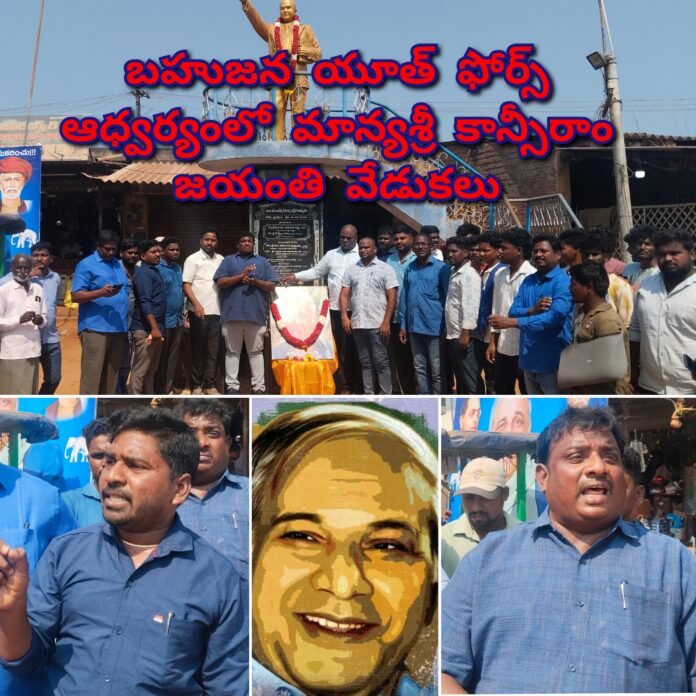 కాలం కన్నటువంటి విప్లవం మాన్యశ్రీ కాన్సీరాం అని బహుజన యూత్ ఫోర్స్ నాయకులు పేర్కొన్నారు.కోట మండలం కోట ఆర్టీసీ బస్టాండ్ సమీపంలో ఉన్న డాక్టర్ బాబాసాహెబ్ అంబేద్కర్ విగ్రహం వద్ద బహుజన యూత్ ఫోర్స్ ఆధ్వర్యంలో కాన్సిరాం జయంతి వేడుకలను ఘనంగా నిర్వహించారు.ఈ సందర్భంగా బహుజన యూత్ ఫోర్స్ నాయకులు ముందుగా డాక్టర్ బాబాసాహెబ్ అంబేద్కర్ విగ్రహానికి పూలమాలలు వేసి నివాళులు అర్పించారు. అనంతరం మాన్యశ్రీ కాన్సిరాం చిత్రపటానికి పూలమాలలు వేసి నివాళులర్పించారు.ఈ సందర్భంగా బహుజన యూత్ ఫోర్సు నాయకులు దాసరి అశోక్ కాంబ్లే,మీజూరు మల్లికార్జునరావు మాట్లాడుతూ బహుజనుల ఐక్యత అభివృద్ధి కోసం బహుజన సమాజ్ పార్టీని స్థాపించి అణగారిన వర్గాల సామాజిక, రాజకీయ చైతన్యం కోసం జీవితాన్ని అంకితం చేసిన మహావీరుడు మాన్యశ్రీ కాన్సీరామ్ అని అన్నారు.ఆయన బహుజన సమాజం, దళితులు మరియు వెనుకబడిన వర్గాల అభ్యున్నతి కోసం చేసిన కృషిని,”కులాన్ని నిర్మూలిద్దాం-బహుజన సమాజాన్ని నిర్మిద్దాం” అనే నినాదాన్ని ప్రతి ఒక్కరూ గుర్తు చేసుకోవాలన్నారు.బాబాసాహెబ్ అంబేద్కర్ ఆలోచనా విధానాన్ని ప్రజల్లోకి తీసుకెళ్లిన నాయకుడు కాన్సిరాం అని,బహుజనులలో రాజకీయ చైతన్యాన్ని నింపే యోజనతో బహుజన్ సమాజ్ పార్టీని స్థాపించి బహుజనుల హక్కుల కోసం పోరాటాలు చేశారన్నారు.పాలితులుగా ఉన్న చిన్న కులాలను పాలకులుగా మార్చేందుకు ఆయన చేసిన కృషిని గురించి తెలిపారు. బహుజనులను అనచివేస్తున్న కుల వివక్షను ఎదిరించి బలహీన వర్గాలను బలమైన బహుజన శక్తిగా పరివర్తన చేసేందుకు కృషి చేసిన మహావీరుడు కాన్సిరాం ఆయన సేవలను కొనియాడారు.ఈ కార్యక్రమంలో బహుజన యూత్ ఫోర్స్ నాయకులు కర్లపూడి వెంకట రమణయ్య,కనుపూరు కృష్ణయ్య, మీజురు మల్లికార్జున రావు,దార్ల ఏడుకొండలు,కుదురు సూర్య,శంకర్, మీజూరు మురళీ,జోరేపల్లి తేజ,లాయర్ అశోక్ కాంబ్లే,సలవాది ప్రశాంత్,సమాజ చైతన్య సమితి నాయకులు బందిల రంగనాథ్,పంట్రంగం వసంత్,యనాటి మస్తాన్ అంబేద్కర్ యూత్ సేవా సమితి సభ్యులు పల్లం రాజశేఖర్,తూపిలి వినోద్,తూపిలి నిరంజన్,బందిల గౌతమ్, తేరూరు సంతోష్,బల్లి యశ్వంత్ తదితరులు పాల్గొన్నారు.