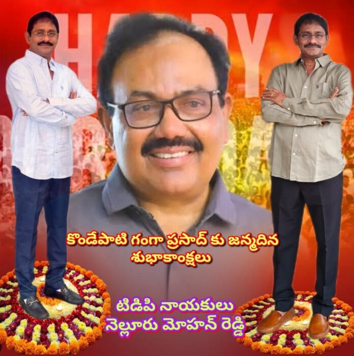 తెలుగుదేశం పార్టీ సీనియర్ నాయకులు ప్రముఖ పారిశ్రామికవేత్త కొండేపాటి గంగా ప్రసాద్ పుట్టినరోజు సందర్భంగా కోట మండలం నెల్లూరుపల్లి కొత్తపాలెం గ్రామానికి చెందిన టీడీపీ నాయకులు జిల్లా రైతు విభాగ కార్యదర్శి నెల్లూరు మోహన్ రెడ్డి గంగా ప్రసాద్ కు జన్మదిన శుభాకాంక్షలు తెలిపారు.ఈ సందర్భంగా నెల్లూరు మోహన్ రెడ్డి మాట్లాడుతూ అజాత శత్రువు,అందరి బంధువు,మృథు స్వభావి,పేద వారికి ఎల్లప్పుడూ సహాయ,సహకారాలు అందించే మంచి మనసున్న గొప్ప వ్యక్తి కొండేపాటి గంగా ప్రసాద్ కు సకల దేవతల ఆశీస్సులు ఉండాలని కోరుతున్నాను అన్నారు. తెలుగుదేశం పార్టీ నాయకులుగా పార్టీ బలోపేతానికి ఎంతగానో కృషి చేసిన వ్యక్తి, ఎన్నో సేవా కార్యక్రమాలతో ఎంతోమంది నిరుపేదలను ఆదుకున్న మహోన్నతమైన వ్యక్తి గంగా ప్రసాద్ అని,అలాంటి ప్రజా సేవకుడికి ఆ భగవంతుడు అష్టైశ్వర్యాలను ఆయురారోగ్యాలను ప్రసాదించాలని భగవంతుని ప్రార్థిస్తున్నానని అన్నారు.